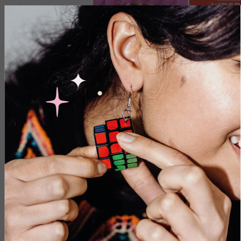 欧米のクロスボーダーinsと同じ趣味で、ルービックキューブのイヤリングを回転させることができます。