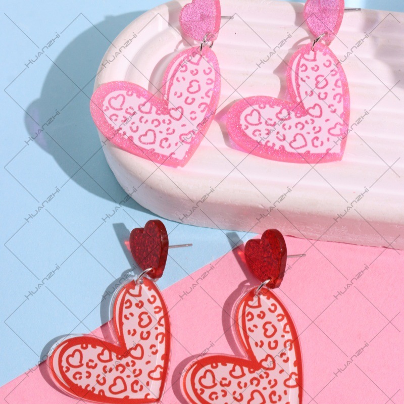 国境を越えた欧米のアクリルピンクの手描きの愛のイヤリングバレンタインデーの個性のハート型のプリントのイヤリングのアクセサリー