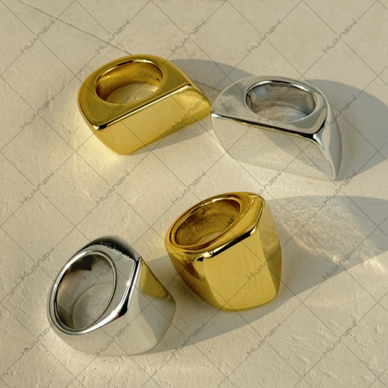 国境を越えた欧米の小さな光面の四角の指輪の角を切った大きな光板の指輪の高級感はシンプルで冷たいinsの指輪です。