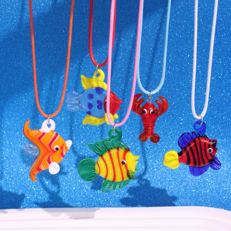 国境を越えた欧米風カラー瑠璃海洋風小魚手作りビーズネックレスinsは鎖を重ねている