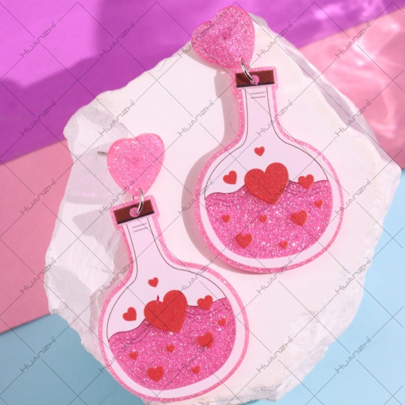 国境を越えたアクリルバレンタインデー魔法薬瓶イヤリングピンクかわいい瓶イヤリング祝日プレゼント耳飾り