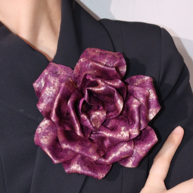 15cmクリエイティブカール豹紋布芸カラーストライプ花ブローチピン手作り花服装アクセサリー