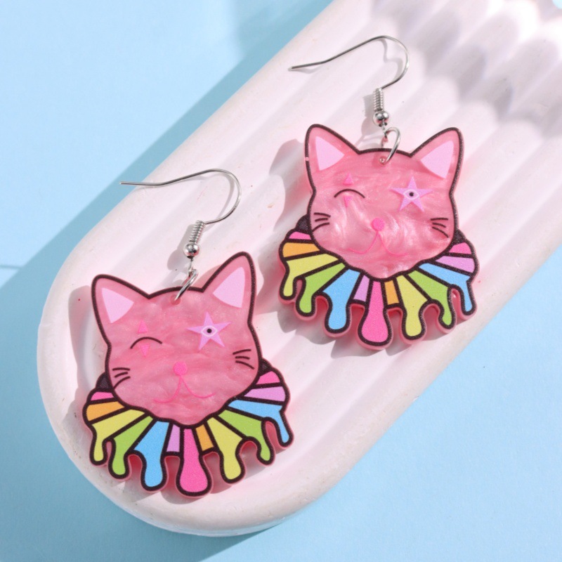 国境を越えた欧米のアクリルピンクの道化師猫プリントイヤリングバレンタインデー個性かわいい猫イヤリングジュエリー