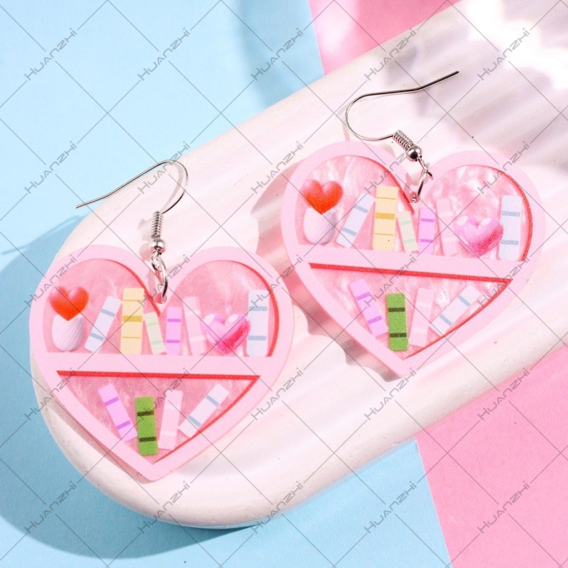 国境を越えた欧米のアクリルピンクの愛の本棚のプリントイヤリングバレンタインデーの個性のハート型のアルファベットのイヤリングのアクセサリー