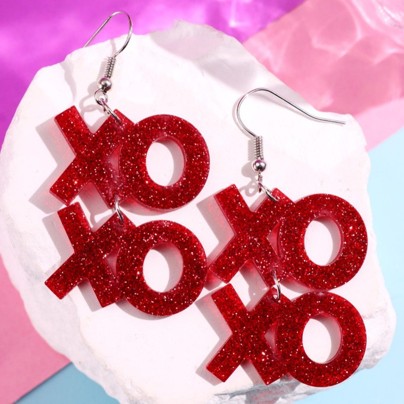 国境を越えた新しいファッションバレンタインデー愛耳飾り透かしハート型唇XOXO英語アルファベットイヤリング