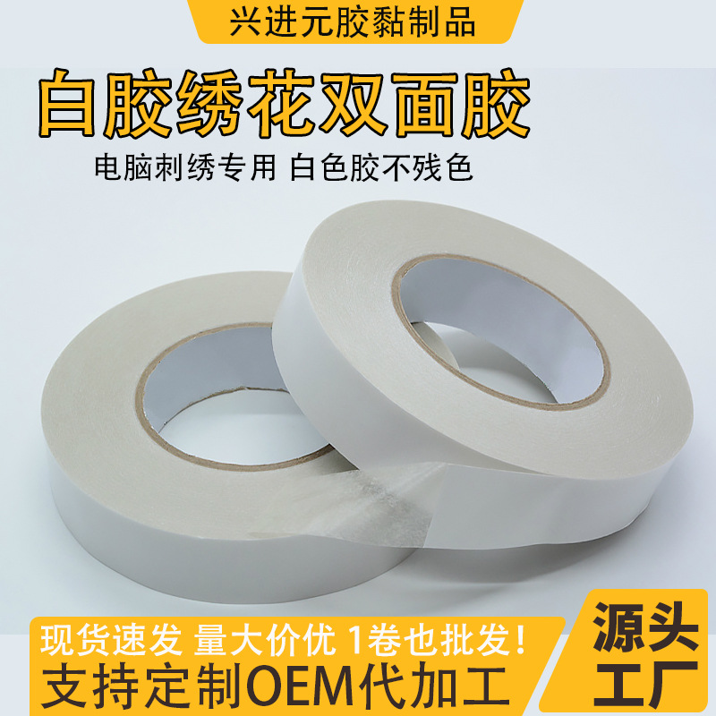 白い刺繍入り両面テープ生地カーテン用色見本、浅い色の刺繍入り色落ちしない透明工業用両面テープ直販