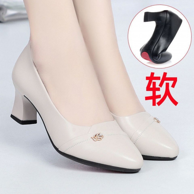 本当に柔らかい皮の太い靴の女性の夏の新型のファッションは小さい靴の中で深い口の女性の靴のお母さんの靴と一緒にいます。