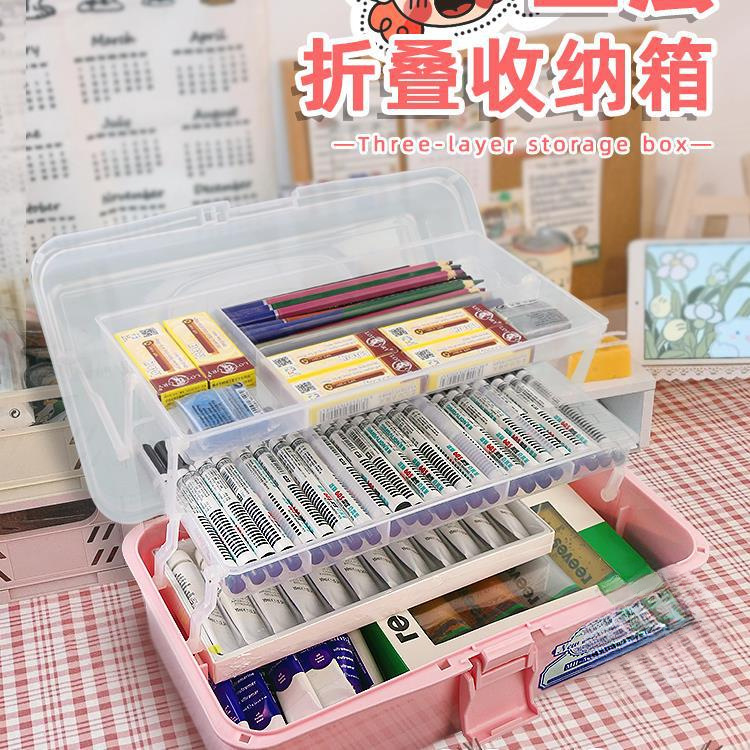 美術学生ツールボックス大容量三層ガッシュペイントボックスインターネット有名人のプラスチックポータブルコンパートメント収納ボックス