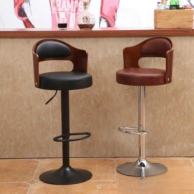 ホームバーチェア無垢材バースツールホームレトロ背もたれリフティングチェア回転ハイスツールフロントデスクレジバーチェア