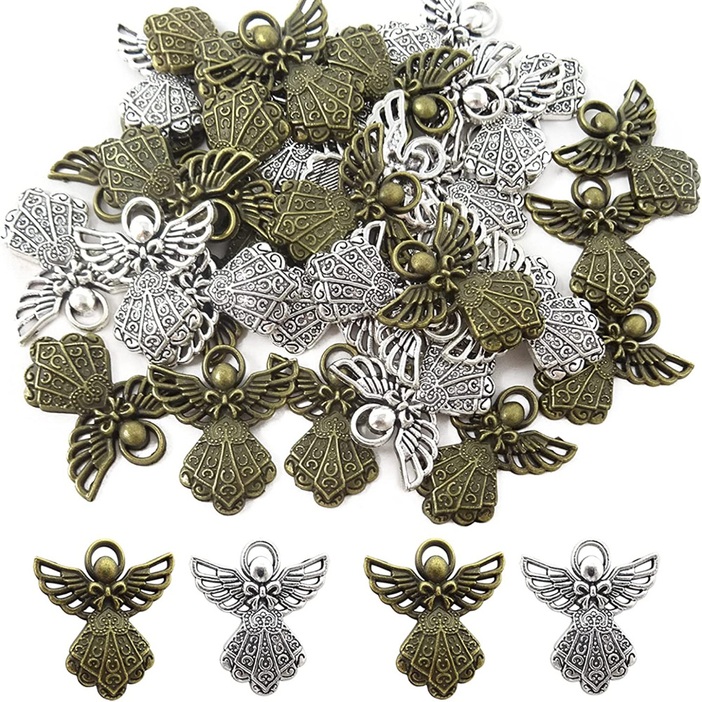 レトロ合金エンジェルペンダントエンジェルブレスレットネックレスイヤリングジュエリー制作とdiyアクセサリー100パック
