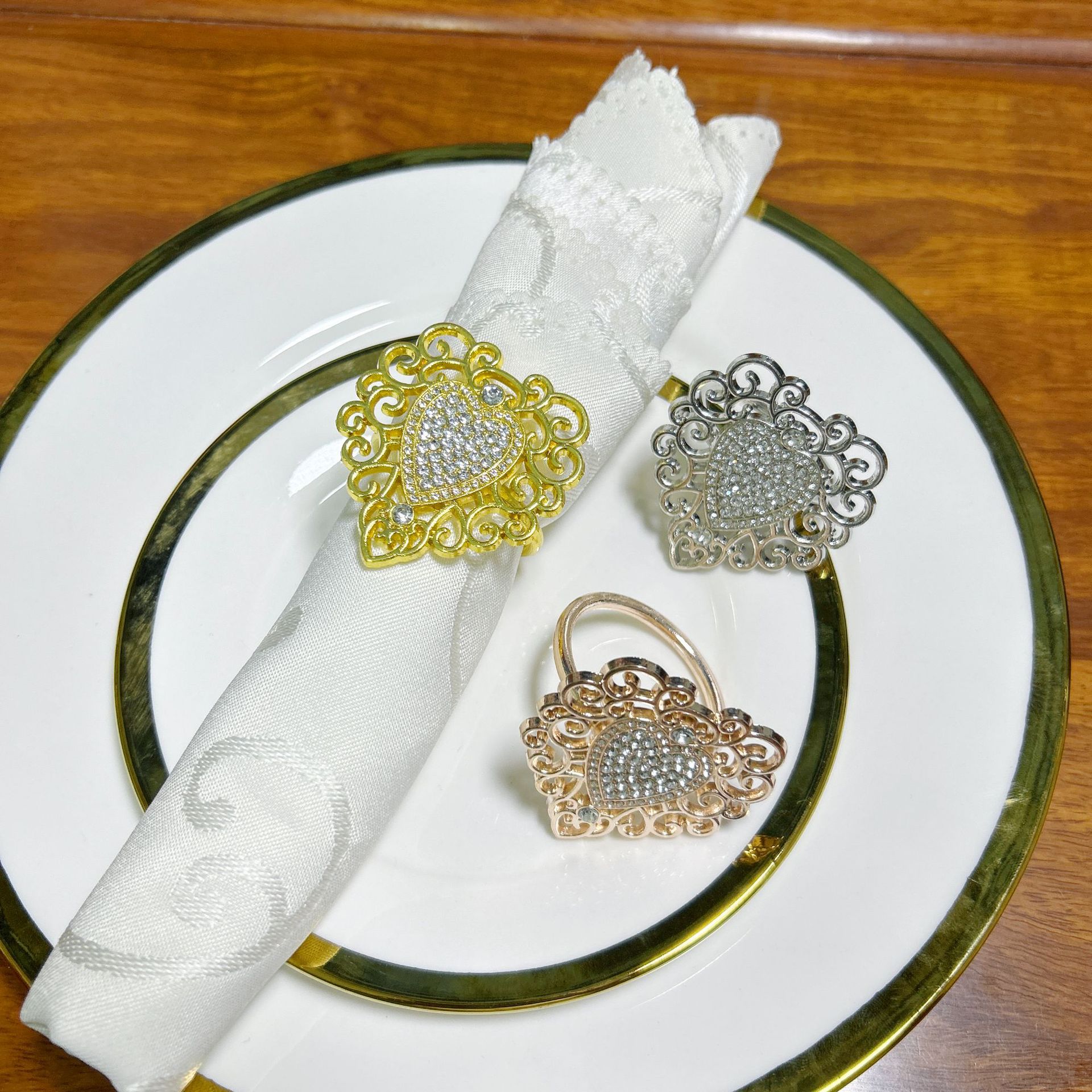 国境を越えたナプキンリングの新しいナプキンは、愛のナプキンリングの高級な金属リングホテルの振り子台の唾液リングをポイントします