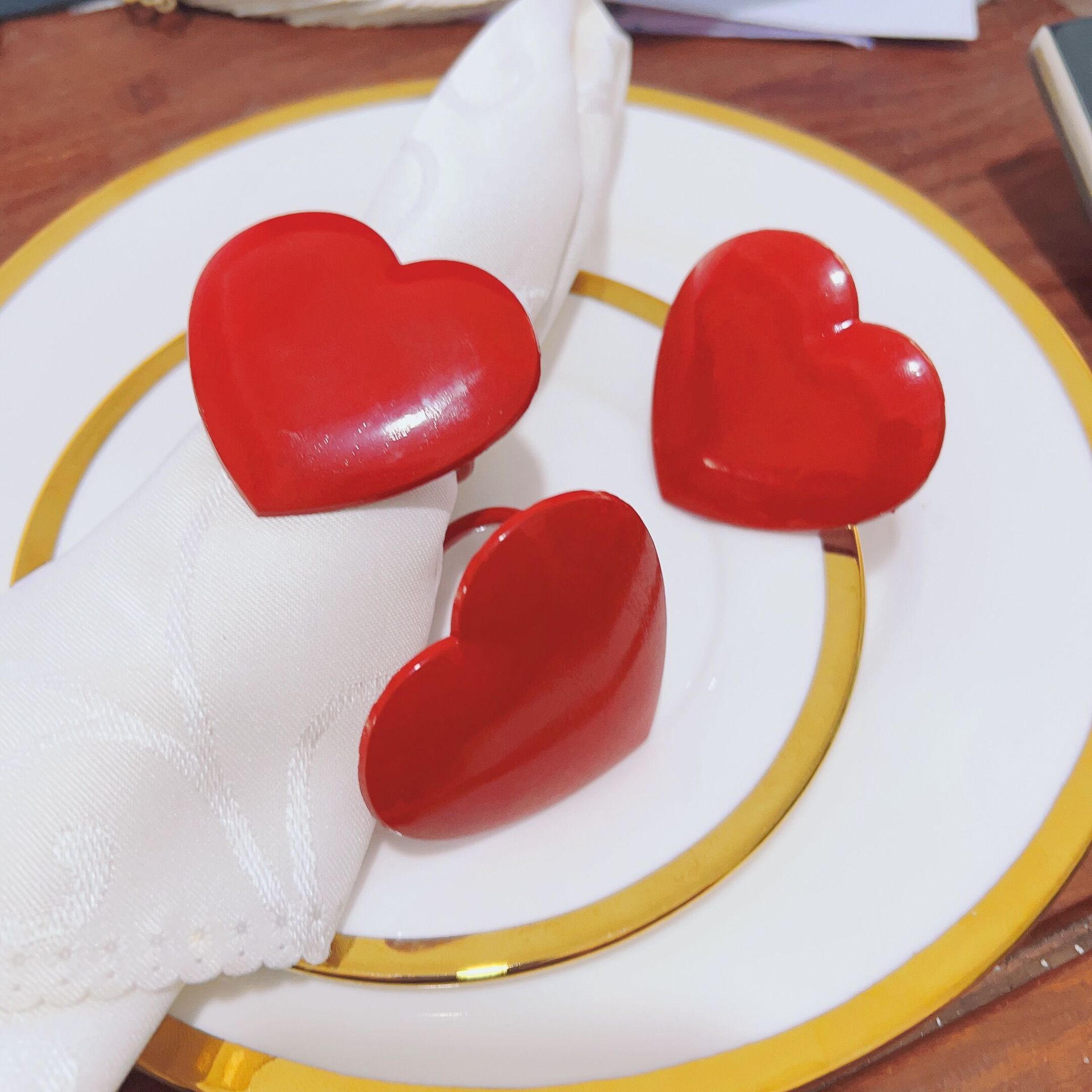 クロスボーダー大きな赤い愛のナプキン亜鉛合金ナプキンリングホテルパーティー装飾ナプキンバックル卸売
