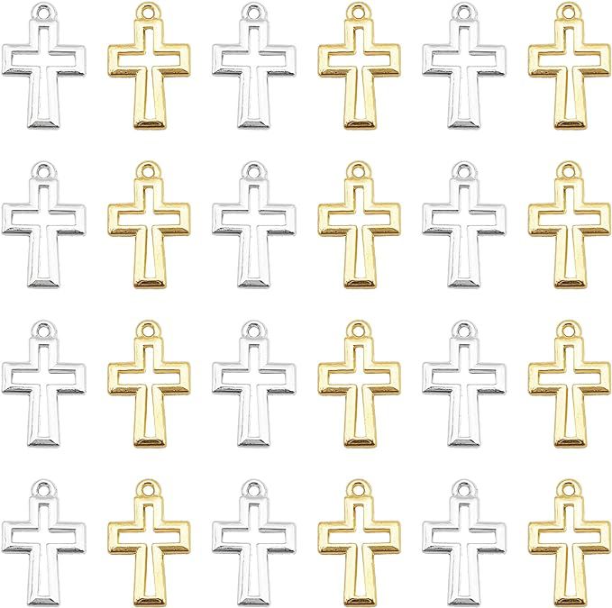 Diy合金アクセサリーの金銀色の透かし彫りのクロスのペンダントの耳飾りのブレスレットのネックレスのペンダントの200個の1包み