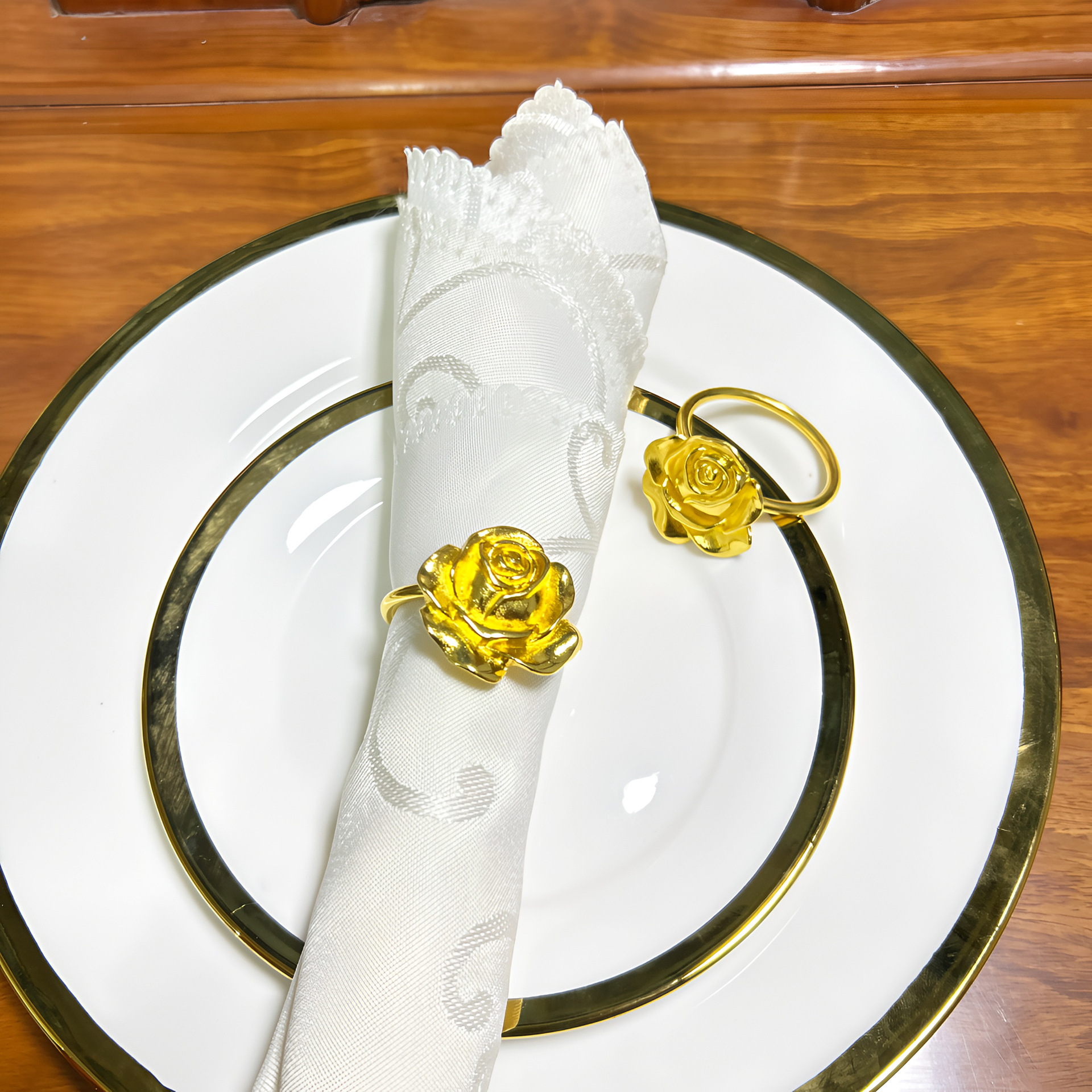 クロスボーダーのバレンタインデーのホテルの置物のバラのナプキンのリングは洋式のレストランの合金の口の輪の創意用品を掛けます。