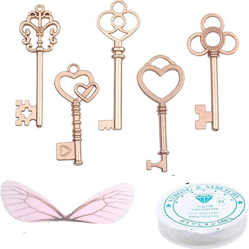 5種類各10個の復古鍵ストラップトンボ翼水晶線diyパーティールーム装飾品