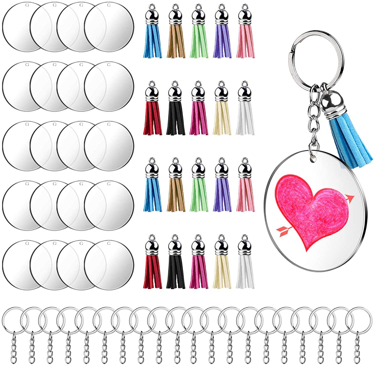 30セットの国境を越えたカラー革流蘇透明アクリルキーホルダーセットパーティーdiy鍵プレゼント