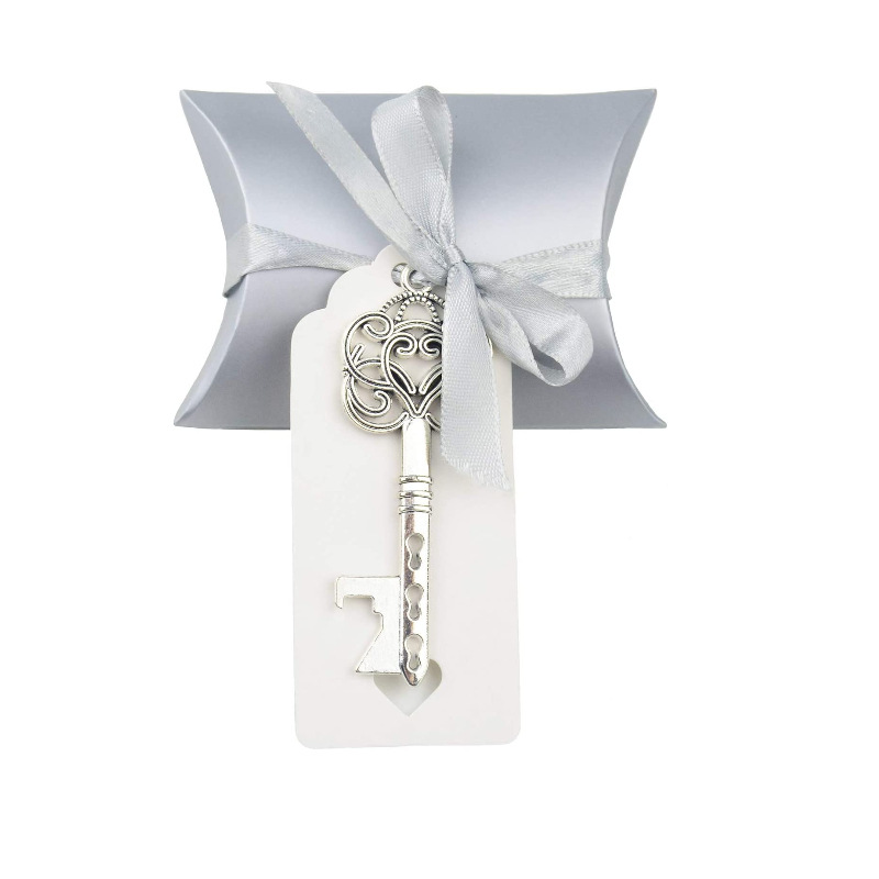 10セットレトロ国境を越えたビール栓抜き鍵ストラップ喜糖箱リボン結婚祝いお返しプレゼント卸売り