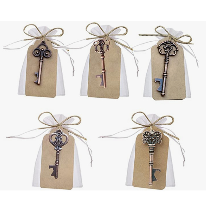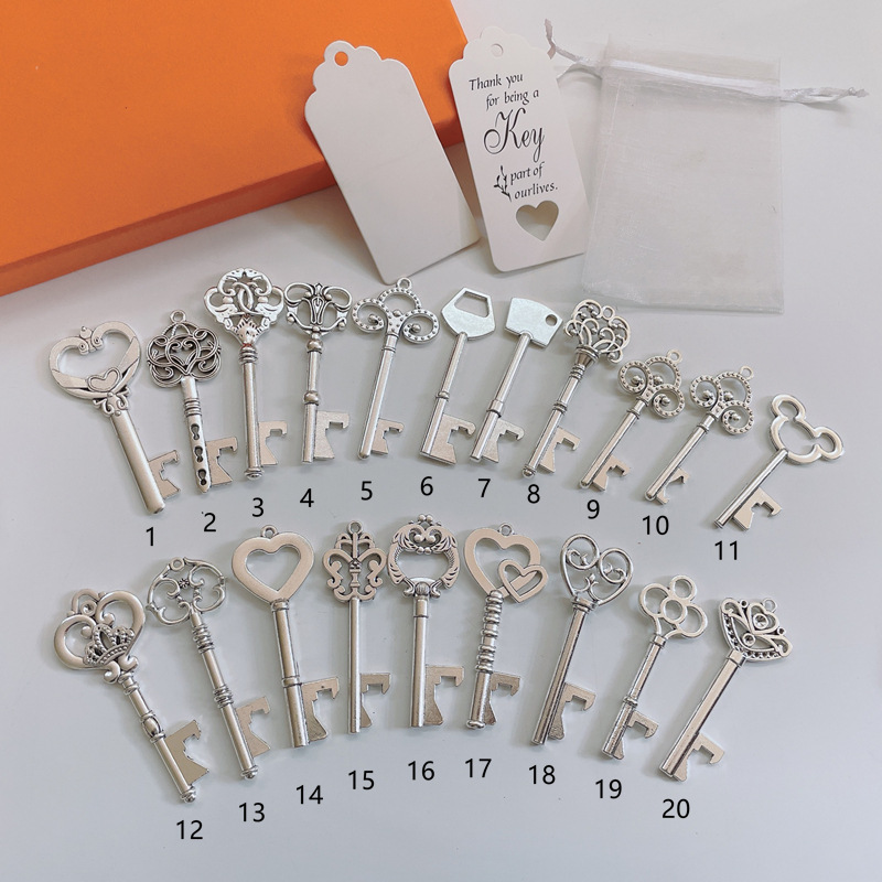 50个レトロキー栓抜きビーズチェーンカード结婚式パーティーギフトペンダント