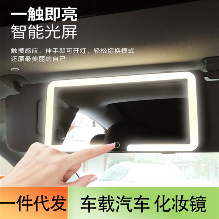 車載LED化粧鏡自動車サンバイザーランプ付き三色調光保護眼携帯高精細鏡面化粧鏡