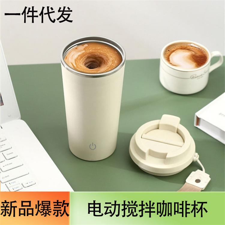 クロスボーダー電動攪拌カップ全自動コーヒーカップ316ステンレス磁力怠け者ダブルドリンクロッキングカップストロー