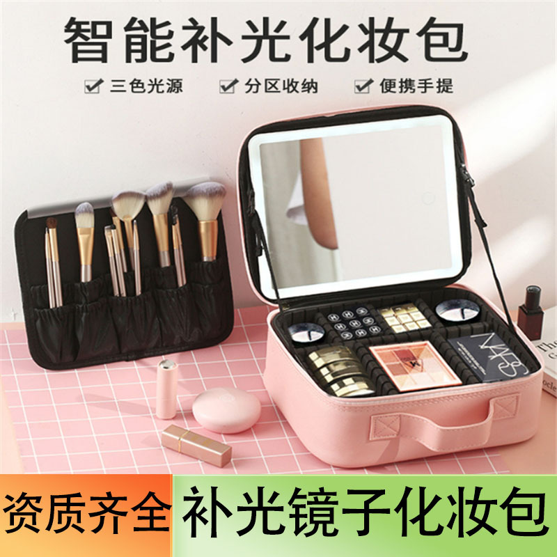 Ledライト付き化粧バッグミラー付き化粧箱新型携帯大容量充電化粧品収納化粧バッグ