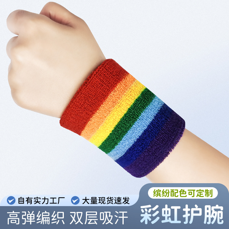 虹のスポーツの腕の男女の腕の保護ベルトのバスケットボールの保護具のカラーの腕のベルトのカップルのファッションの手の輪は個性を編みます