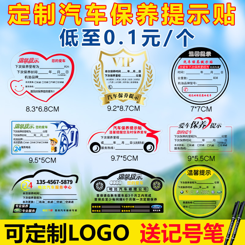 自動車のメンテナンスのヒント静電気シールを貼って修理工場のメンテナンスラベルをカスタマイズしてオイルを交換してカードをカスタマイズして郵送します。