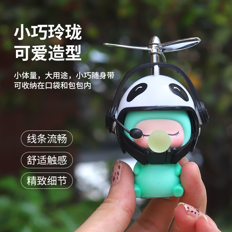 かわいい自転車の装飾の部品の道路の山地の自転車は人形をパンダの恐竜の公仔のオートバイに並べます。