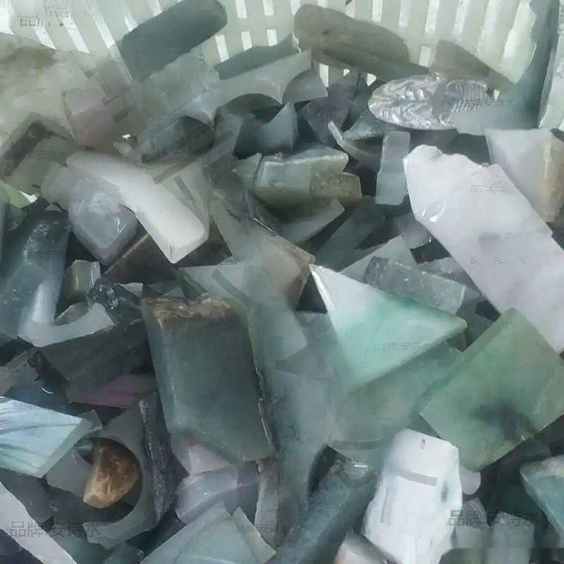翡翠の原石の砕物の初心者は手の毛の材料の端の角材の高い氷の種の下の材料を彫ることを学びます。