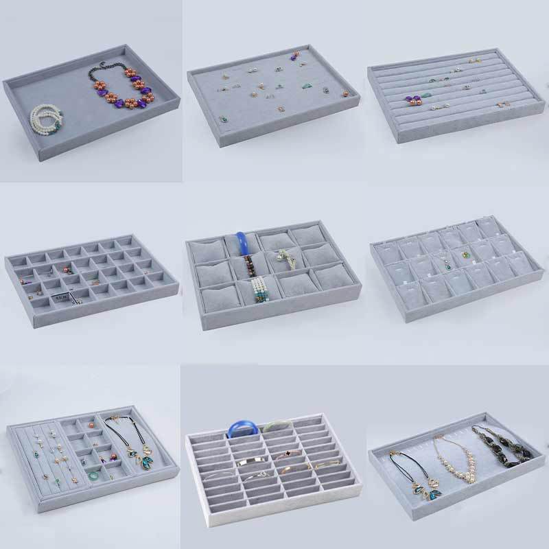 氷の花の植毛は商品のトレーのジュエリーのカウンターの展示盤の指輪のネックレスのピアスの道具のアクセサリーの展示盤を見ます。