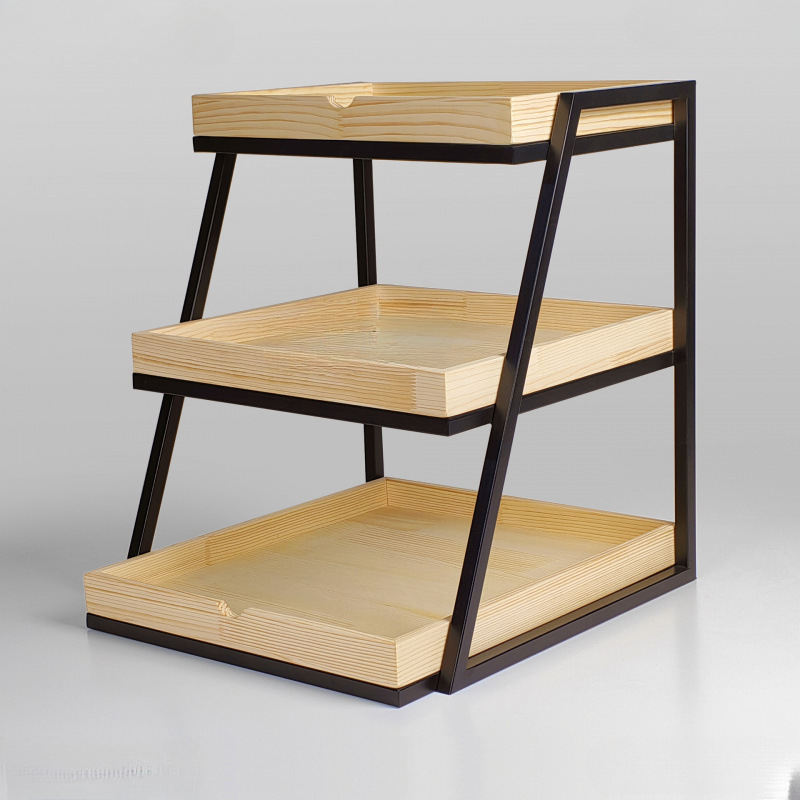 三層松木盤鉄棚パンケーキドライポイント果物陳列棚スーパー販売促進棚テーブル実木展示棚
