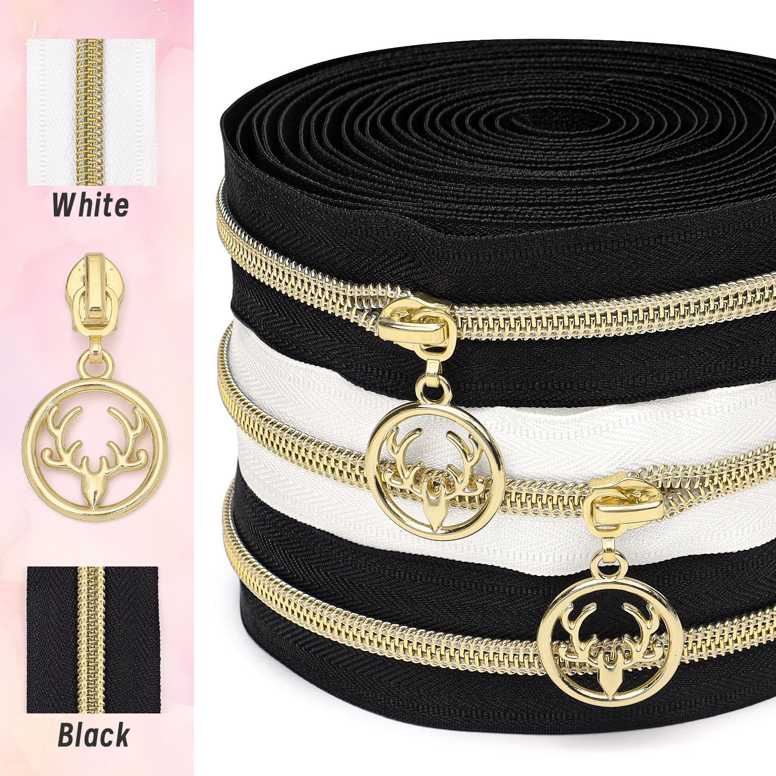 新しい No. 5 メタルナイロンフックヘッドライトゴールデン鹿サークルピース亜鉛合金バッグと衣類のジッパー適切なプル