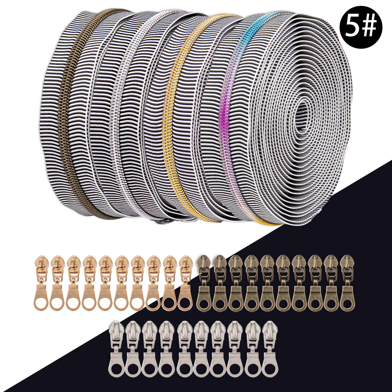 No.5 ゼブラ柄 マルチデンタルカラーバッグ ジッパー 4.5m + デンタルカラージトンヘッド 10個 = 1パック