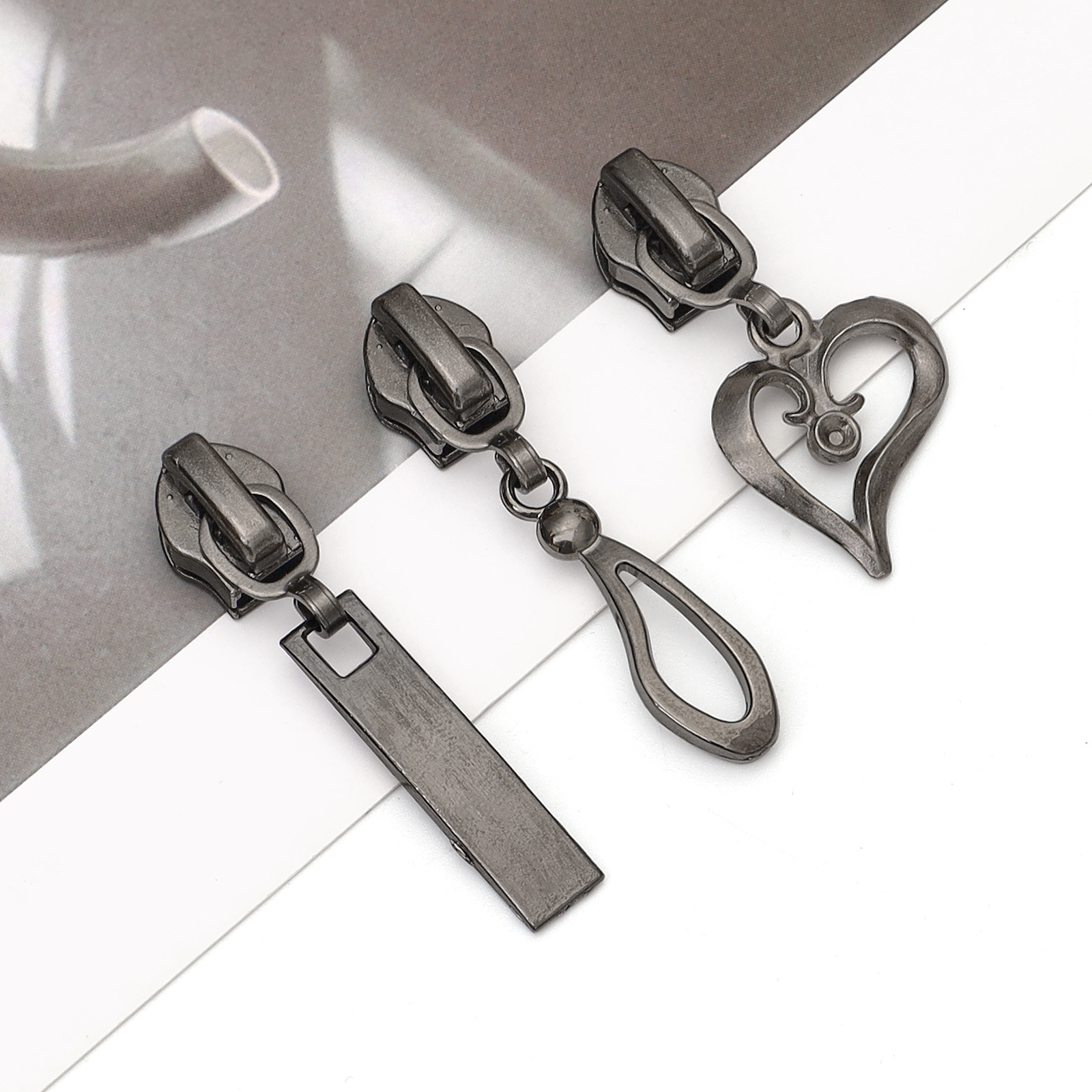 No.5 ナイロン フロント プル ヘッド ガンカラー フック ヘッド ロング プル ヘッド ラブ ドロップ スタイル 亜鉛合金 衣類やバッグに適しています