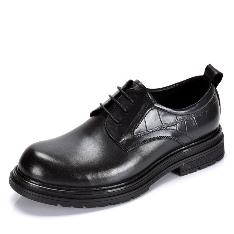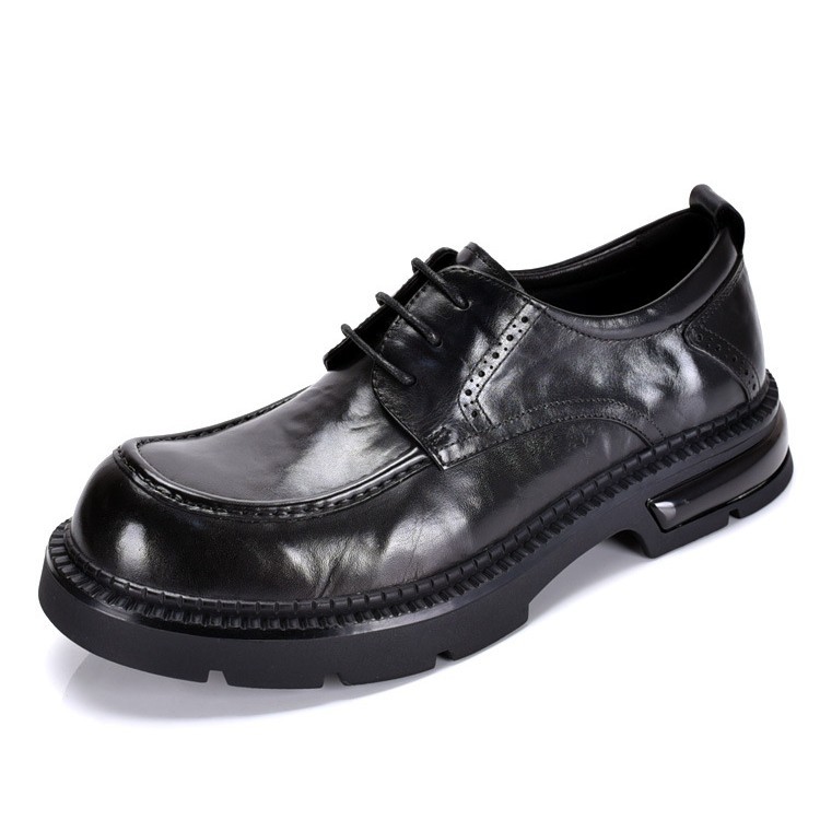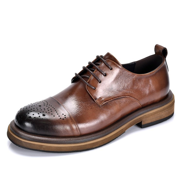 高级感革靴男本革ビジネス正装结婚新郎靴ライトアップ男靴手作り厚い底ダービー靴