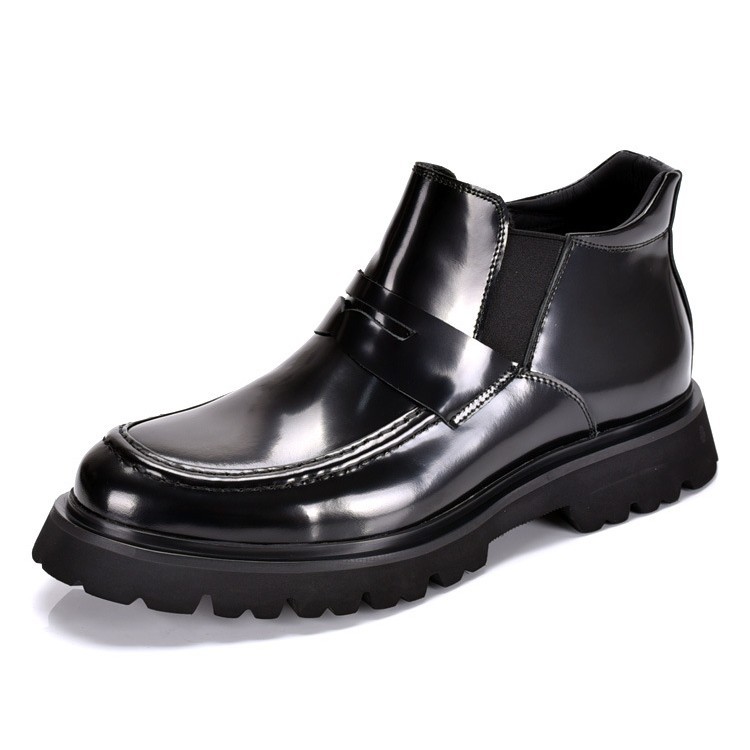 2024新型高組ビジネス正装男性靴ショートブーツ冬にベルベット保温真皮明るい面の厚い底チェルシーブーツ