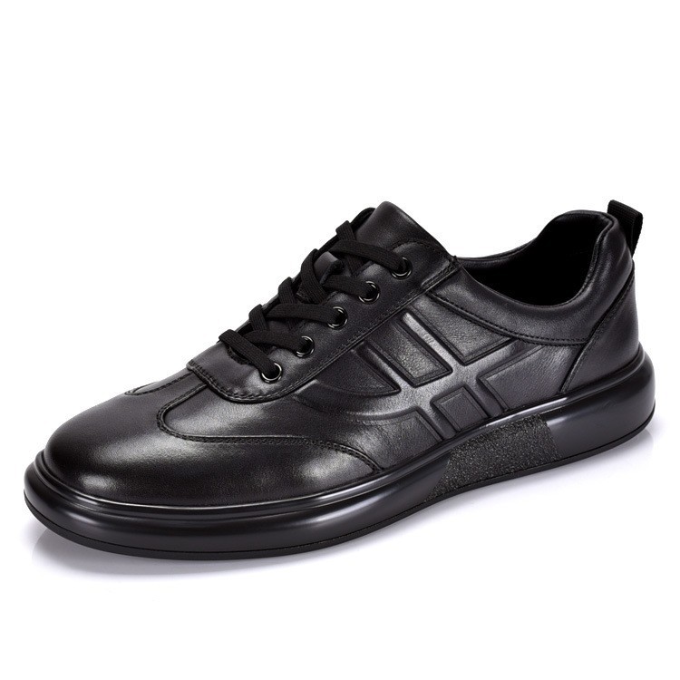 トップ層牛革通気性革靴男軽系ベルト真皮カジュアル百合軟底運動板靴男は厚い底を高くした
