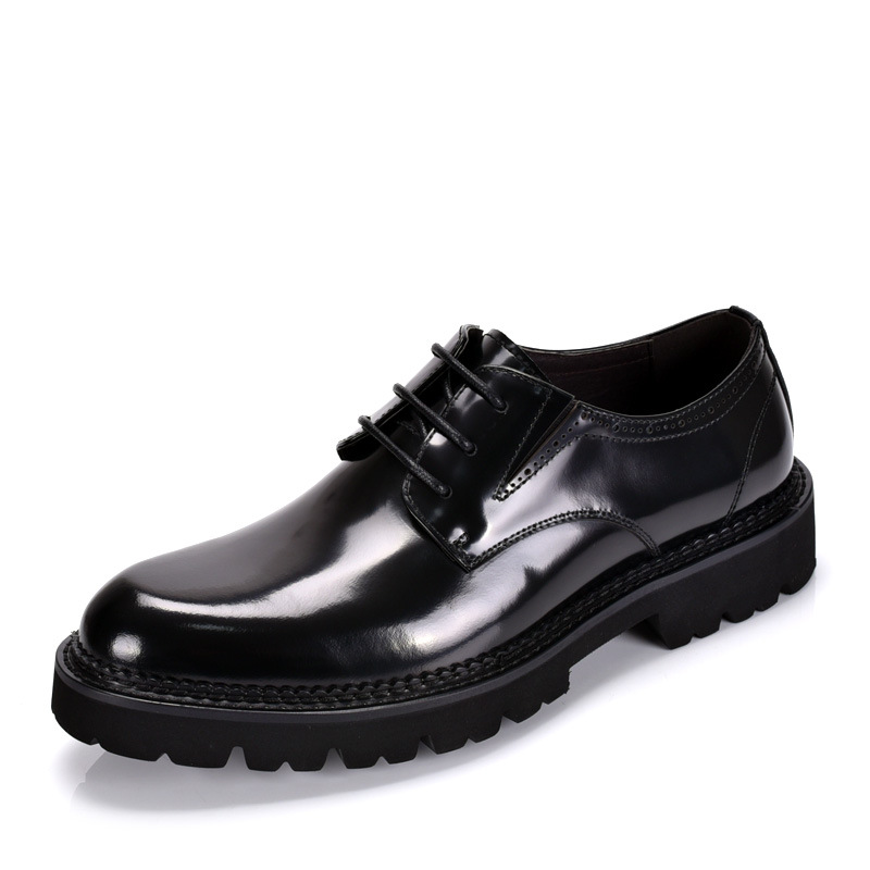 新しいビジネスの正装の靴の英倫の靴のひもの小さい丸い頭の厚い底の漆の皮の男の靴の徳比の靴