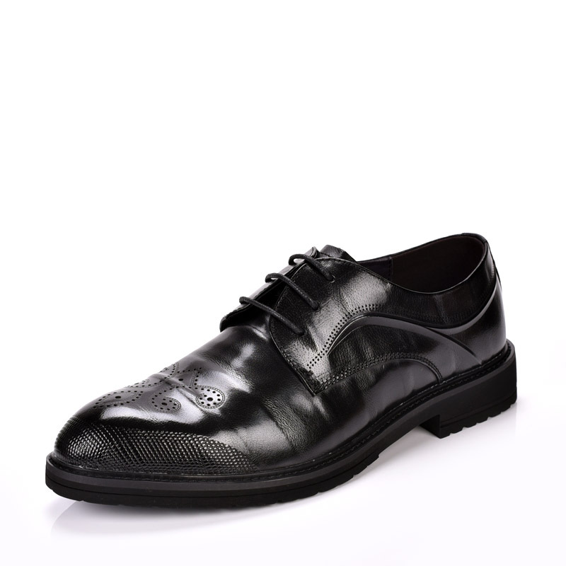 ビジネス正装男性靴春秋モデル本革通気スーツ英倫軟底軟皮亮皮手作りカジュアル男性靴
