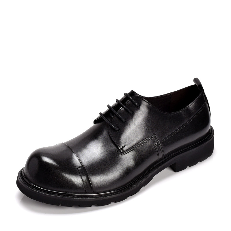 春の新型の英倫の丸い頭の男性の靴の本革の大きい頭の革靴は厚い底のビジネスの正装の靴の男性の牛の革靴を掛けます。