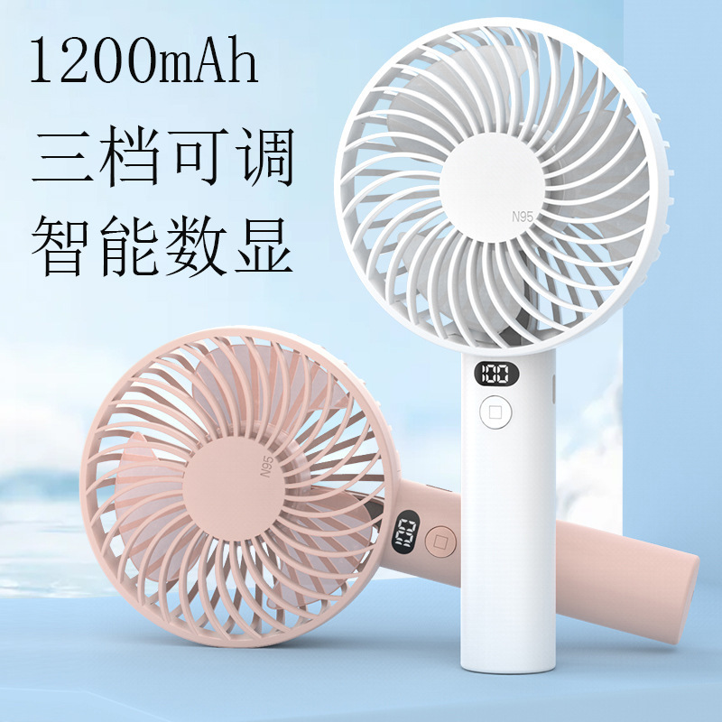 ポータブルデジタルディスプレイ新しい充電式小型屋外ファンクロスボーダースマートミニハンドヘルド小型ファンホワイト