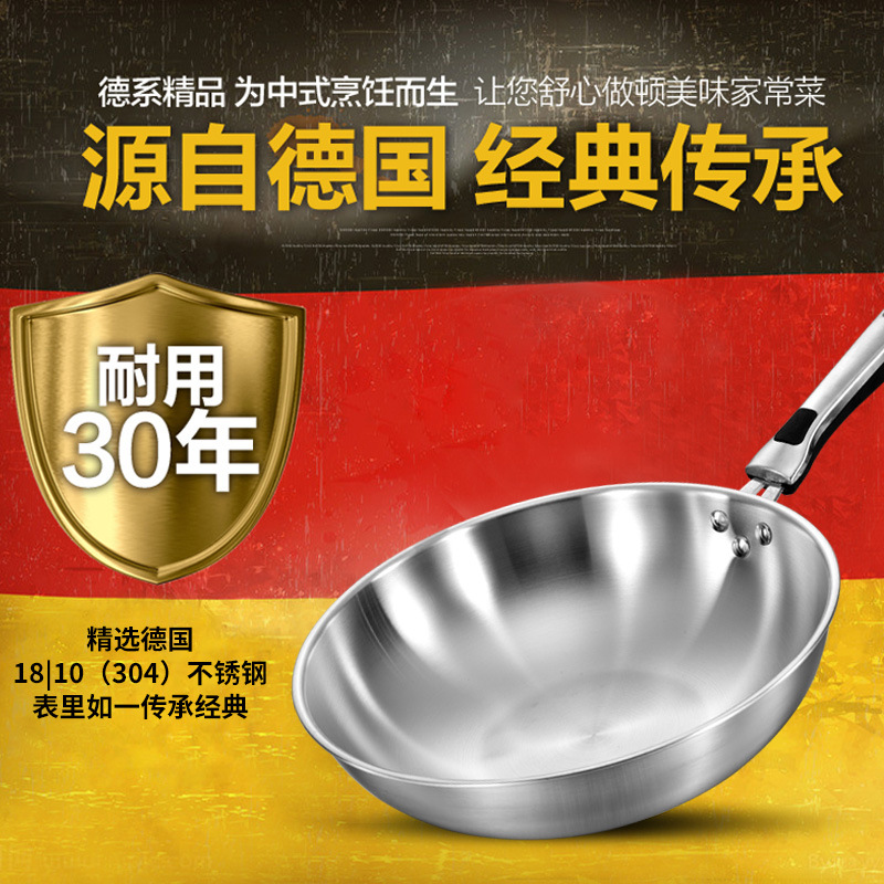 コーティング304ステンレス適用無粘着鍋炒め鍋家庭用ドイツ炒め鍋電磁ストーブ無油煙ガス