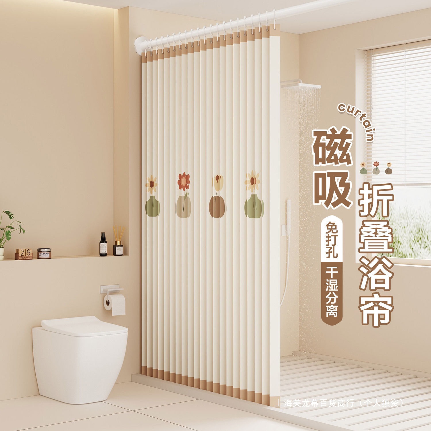 防水乾湿分離目に見えない磁気シャワーカーテンセットパンチフリー浴室目に見えないカーテン折りたたみ浴室パーティション