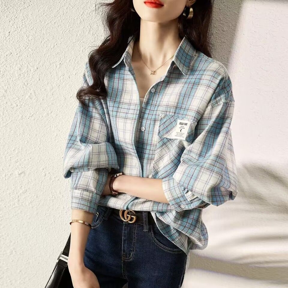 起毛チェック柄長袖シャツ女性のための春と秋の新しいファッション韓国スタイルカジュアル多用途チェック柄シャツジャケット