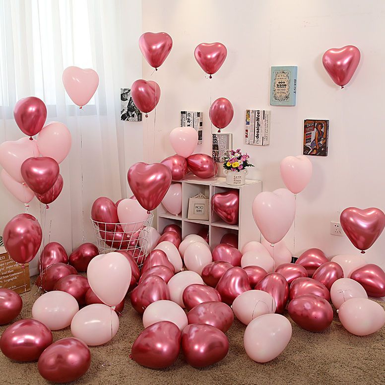結婚式の結婚式の部屋の装飾メタルラブピーチハート型ピンクフローティングバルーン女性の婚約寝室の装飾