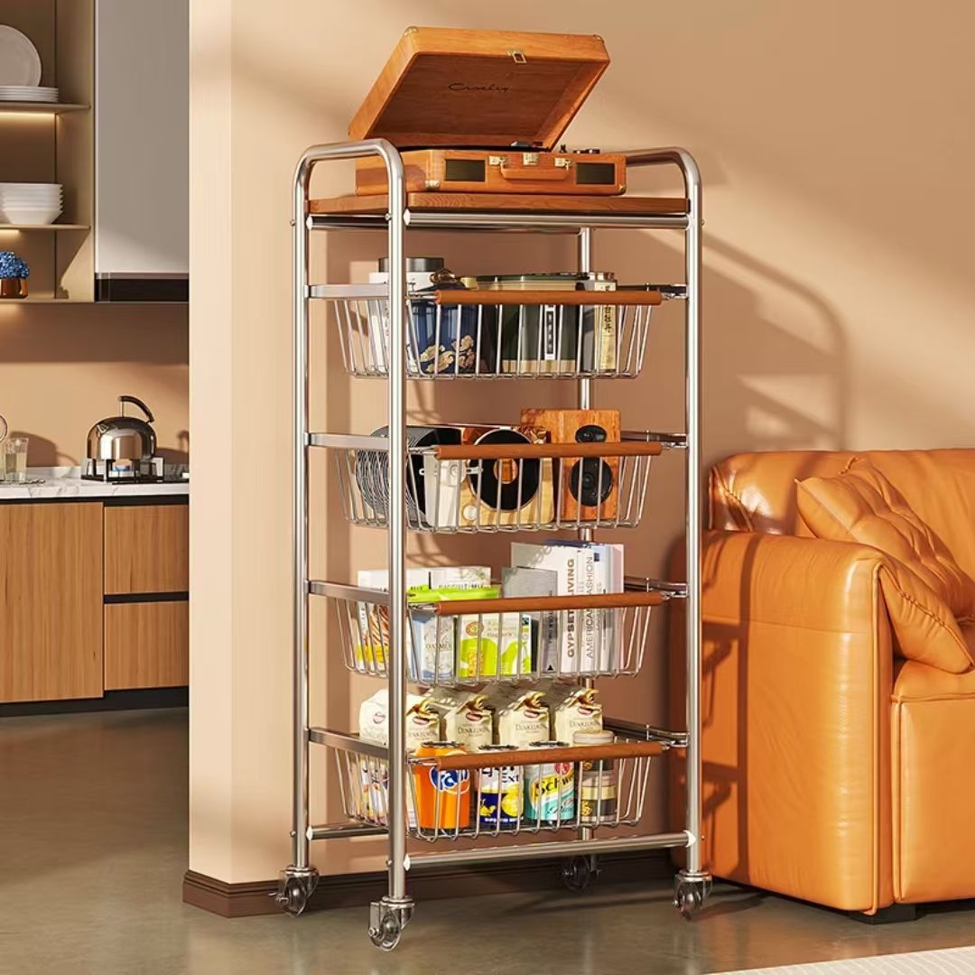 中古トロリーリビングルーム収納ラック取り外し可能な多層スナック収納ラックホールトロリー床置きタイプ