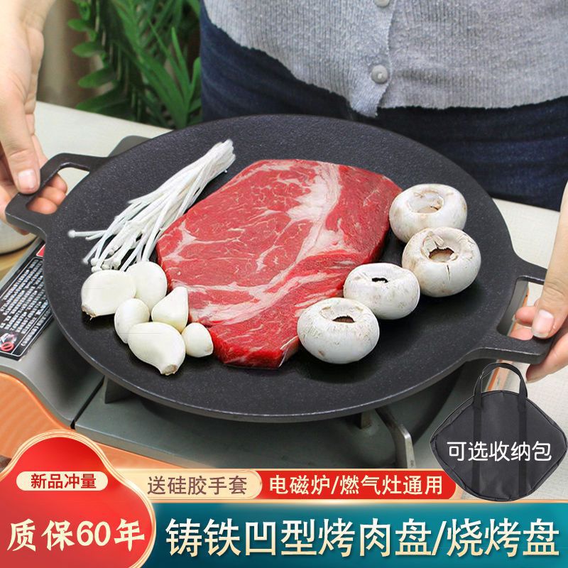 鋳鉄無塗装バーベキュープレート、屋外専用鋳鉄グリルパン、家庭用鉄板焼き韓国風フライパン、ノンスティックパン