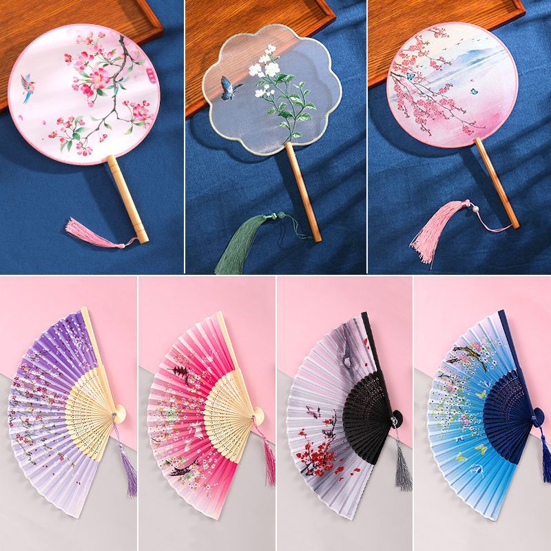 古代扇子、子供用夏用半透明長柄タッセル小型扇子、古代衣装女性用漢服チャイナドレスダンス扇子