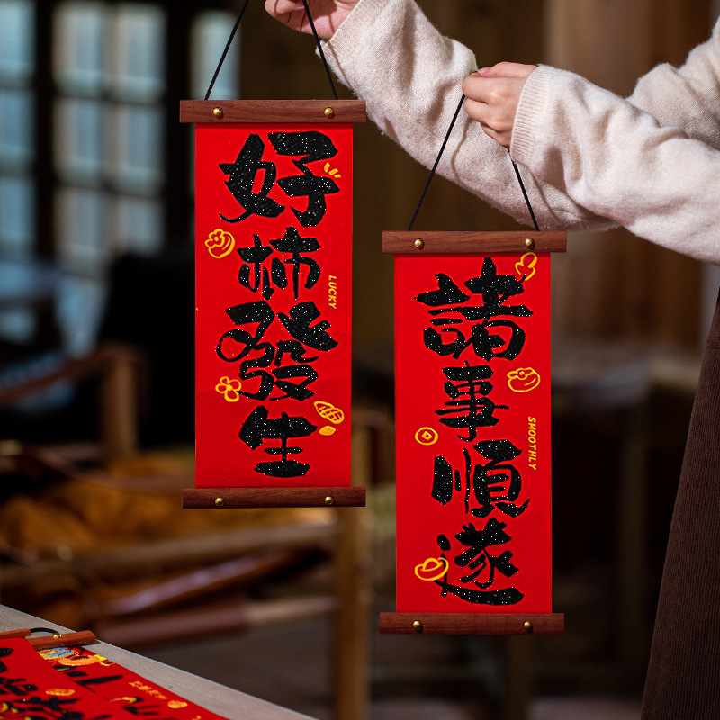新年飾り木製小対聯春節布製対聯吊り下げ飾り新築祝い結婚式室内装飾用品