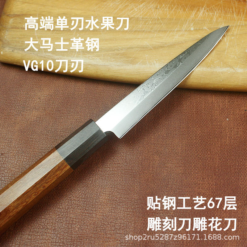 贴钢右手单刃VG10水果刀高硬度超锋利雕刻刀食品雕花刀酸枝木小刀
